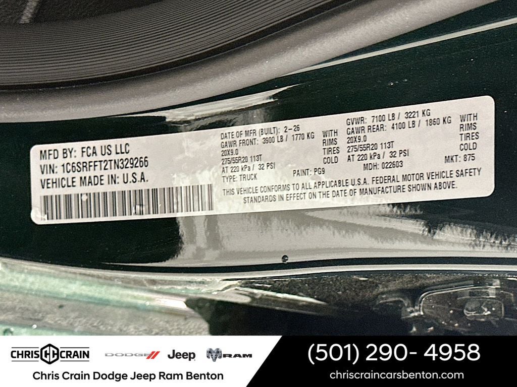 $9,314 off MSRP! 2026 Ram 1500 Big Horn/Lone Star Serrano Green Metallic 4WD Price includes: $3500 - 2026 National Retail Bonus Cash . Exp. 04/30/2026 $750 - 2026 Southwest BC Retail Bonus Cash . Exp. 04/30/2026