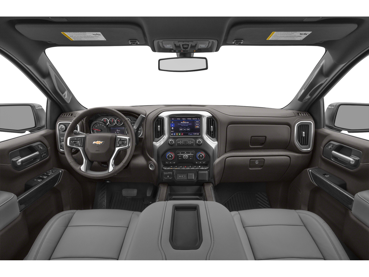 The exterior of this Silverado LTZ is accented with chrome details, including the grille, mirror caps, and rear bumper. The 20-inch polished finish alloy wheels add a touch of elegance to the rugged design. Inside, the cabin is appointed with perforated leather-trimmed seats, providing both comfort and style.