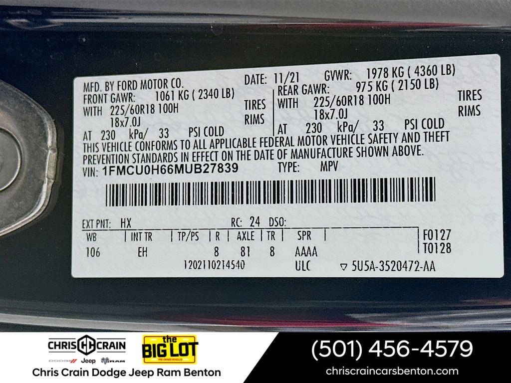 - Vehicle Name: Ford Escape