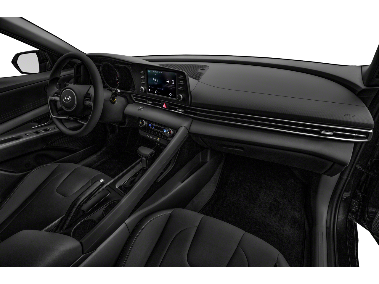 Stepping inside, you'll find a comfortable and well-appointed cabin with cloth seat trim, a front center armrest, and a tilt and telescoping steering wheel. The Elantra's infotainment system is intuitive and user-friendly, with Apple CarPlay and Android Auto integration for seamless smartphone connectivity.
