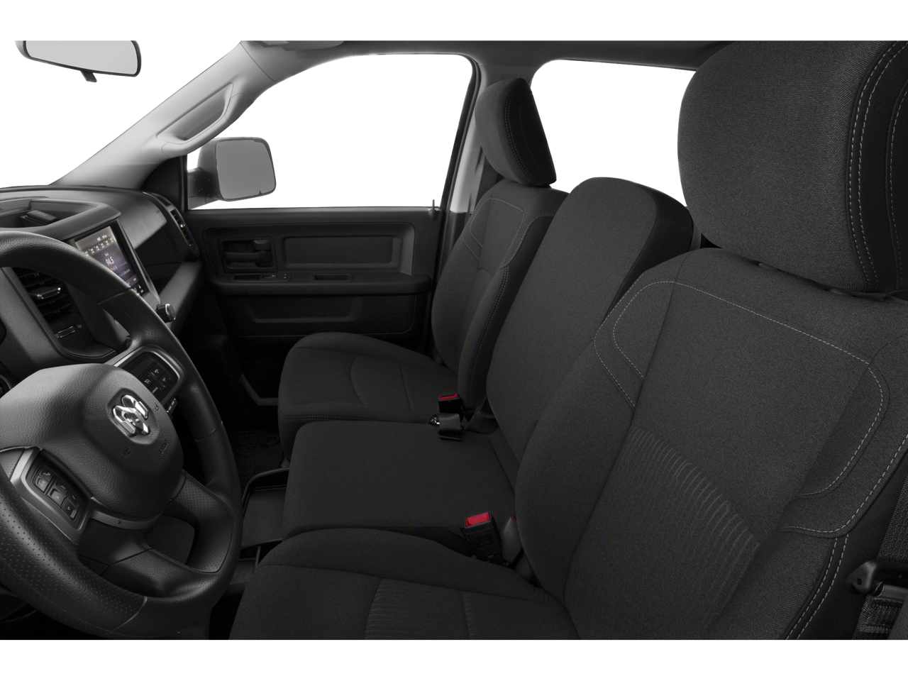 The interior of this Ram 2500 is designed with your comfort in mind, featuring a 40/20/40 split bench seat with a front armrest and cupholders. The power-adjustable and heated tow mirrors ensure excellent visibility and control, while the trailer brake control and 5th wheel/gooseneck towing prep group make this truck a true workhorse.