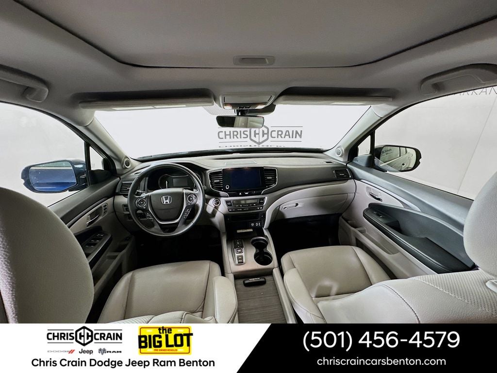 Comfort and convenience are at the forefront, with dual-zone automatic climate control, a power driver's seat, and a heated steering wheel. The Ridgeline's spacious and versatile interior offers ample room for passengers and cargo, with a split-folding rear seat and a large, lockable truck bed.
