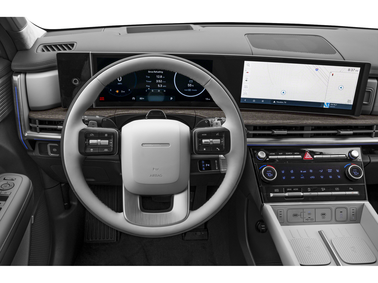 - Radio: AM/FM/HD Bose Premium Audio System -inc: 12 speakers including subwoofer, external amplifier, 12.3" wide touchscreen, Apple CarPlay and Android Auto, Bluetooth® hands-free w/wireless audio streaming, dynamic voice recognition, USB connectivity, SiriusXM, Blue Link connected car system, over-the-air updating capability, navigation system including traffic flow w/incident data via HD Radio (HERE) and rear seat quiet mode