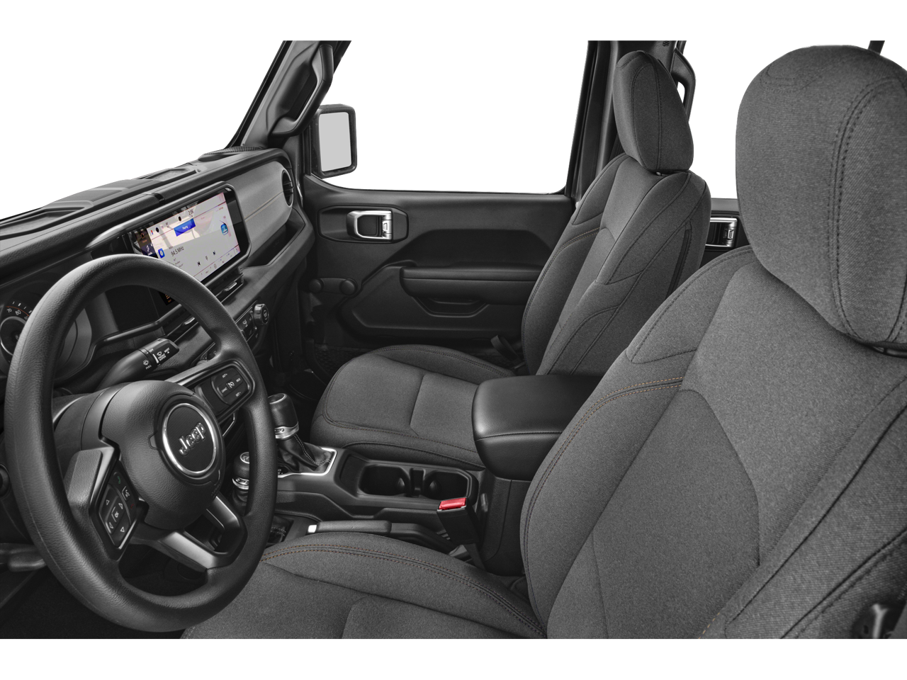 Stepping inside the Wrangler Sport S, you'll be greeted by a host of premium amenities that elevate your journey. The Uconnect 5 infotainment system with a 12.3-inch display seamlessly integrates your smartphone through Apple CarPlay and Android Auto, keeping you connected and entertained. The Cloth Low-Back Bucket Seats provide exceptional comfort, while the Front 1-Touch Down Power Windows and Speed Sensitive Power Locks add a touch of convenience.